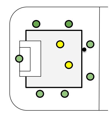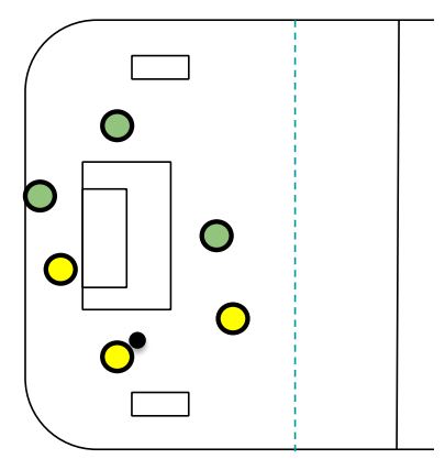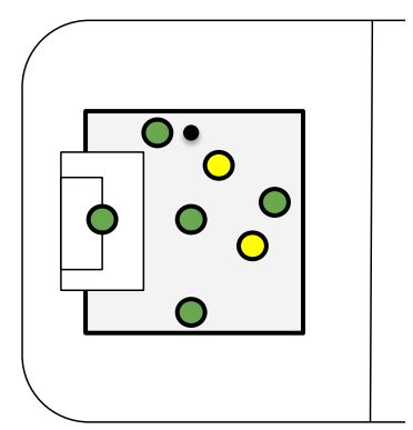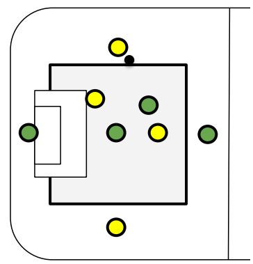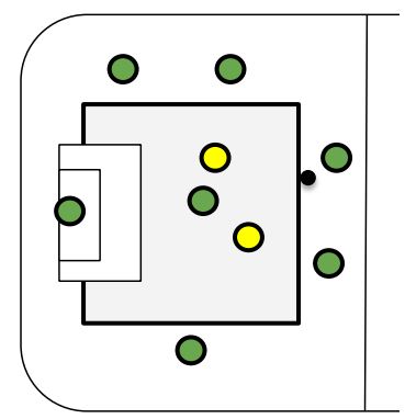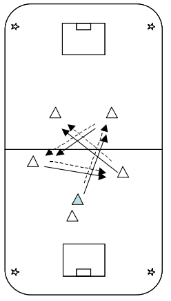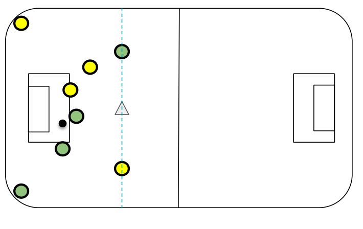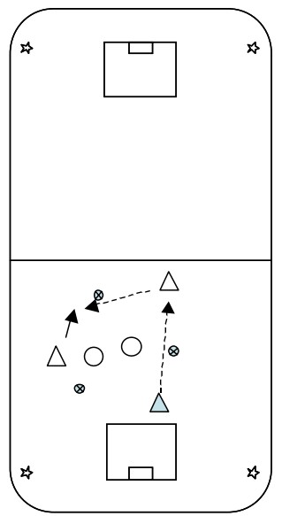 Pelaajat jaetaan viiden hengen ryhmiin. Kolme kartiota muodostavat kolmion (5 m x 5 m x 5 m). Kolmio on kolmen pelaajan ympärillä, ja kaksi pelaajaa on kolmion sisällä. Kolmion ympärillä olevilla pelaajilla on pallo hallinnassaan.