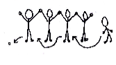 Jonoissa pidetään edessä ja takana olevaa korkealla käsistä kiinni, jonon viimeinen lähtee pujottelemaan kaikkien käsien alta ja saadessaan ensimmäisen vapaasta kädestä kiinni hän huutaa ”hep”, jolloin seuraava voi lähteä liikkeelle (edetään esim. jokainen 2 kertaa tai kentän päästä päähän)