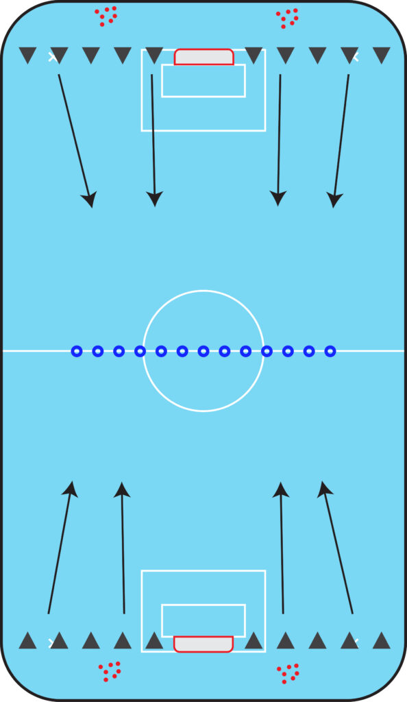 Keilarivi keskiviivalla, keilat ylösalaisin. Pelaajat päädyissä sovitun viivan takana. Pallot molemmissa päissä.